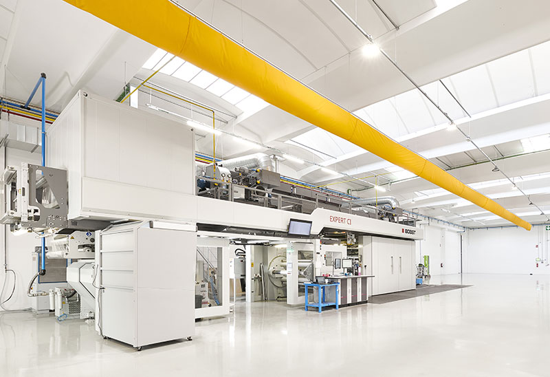 GM Grafica è caratterizzata da un parco macchine completo, integrato e in continua evoluzione, con moderne tecnologie di stampa ad inchiostri ad acqua, accoppiatrici senza utilizzo di solventi chimici, taglierine e linee di preformatura per sacchi e stand-up pouches.